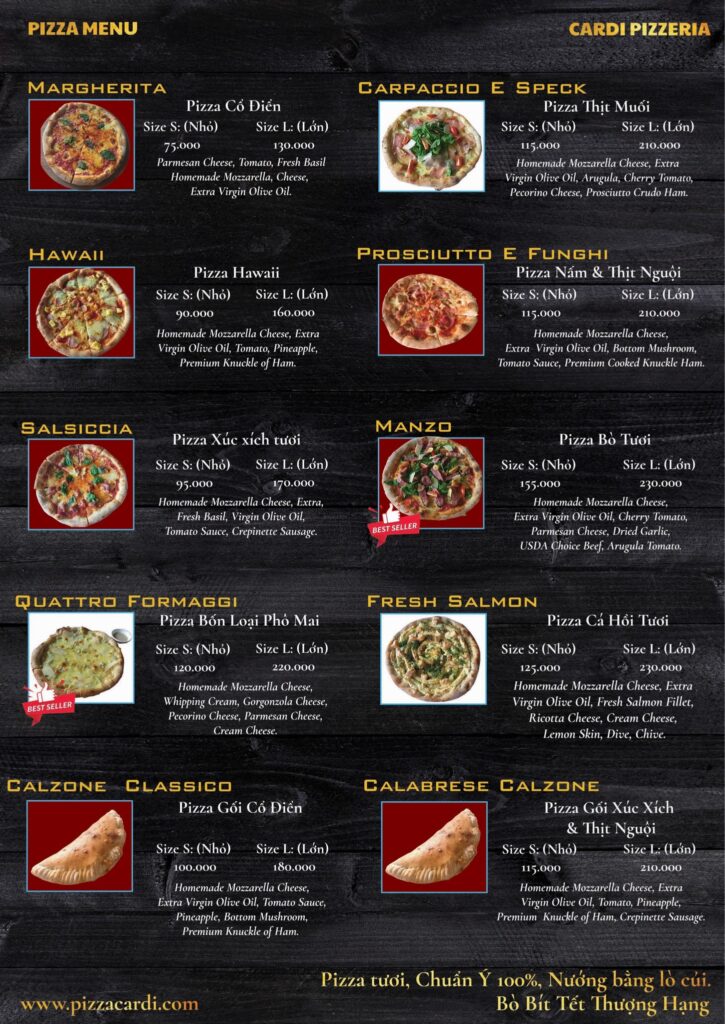 Cardi Pizzeria là chuỗi nhà hàng pizza thủ công số 1 tại miền trung. Tại Cardi Pizzeria Hội AnCardi Pizzeria Đà Nẵng thực khách có thể vừa ăn vừa xem các thợ pizza biểu diễn nghệ thuật làm pizza Ý ngay tại bàn ăn. Đến đây bạn sẽ cực hài lòng về tất cả mọi thứ từ đồ ăn,phục vụ và không gian. Đội ngũ nhân viên phục vụ đã được huấn luyện kĩ càng vì vậy mà rất chu đáo và lịch sự.