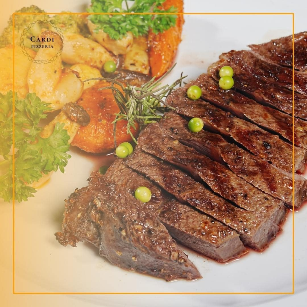 Nhà hàng Cardi Pizzeria còn tự hào với đặc điểm đặc biệt khác đó là bò bít tết nhập khẩu, với những phần thịt bò chất lượng cao, tươi ngon, từ những nguồn cung cấp uy tín trên thế giới để mang lại cho khách hàng những phút giây thưởng thức tuyệt vời nhất.