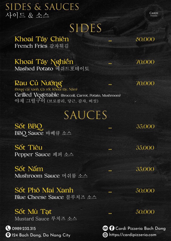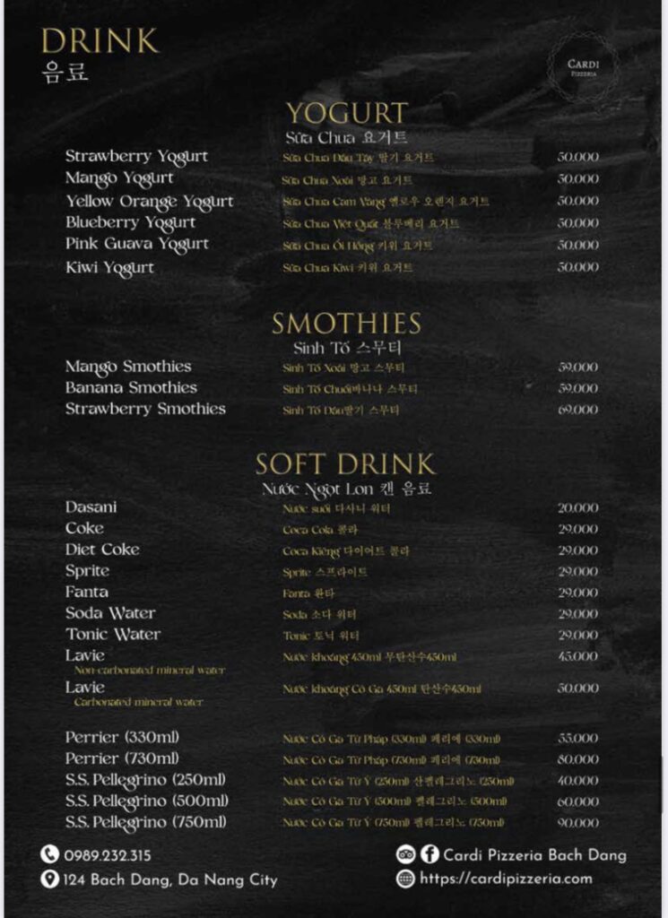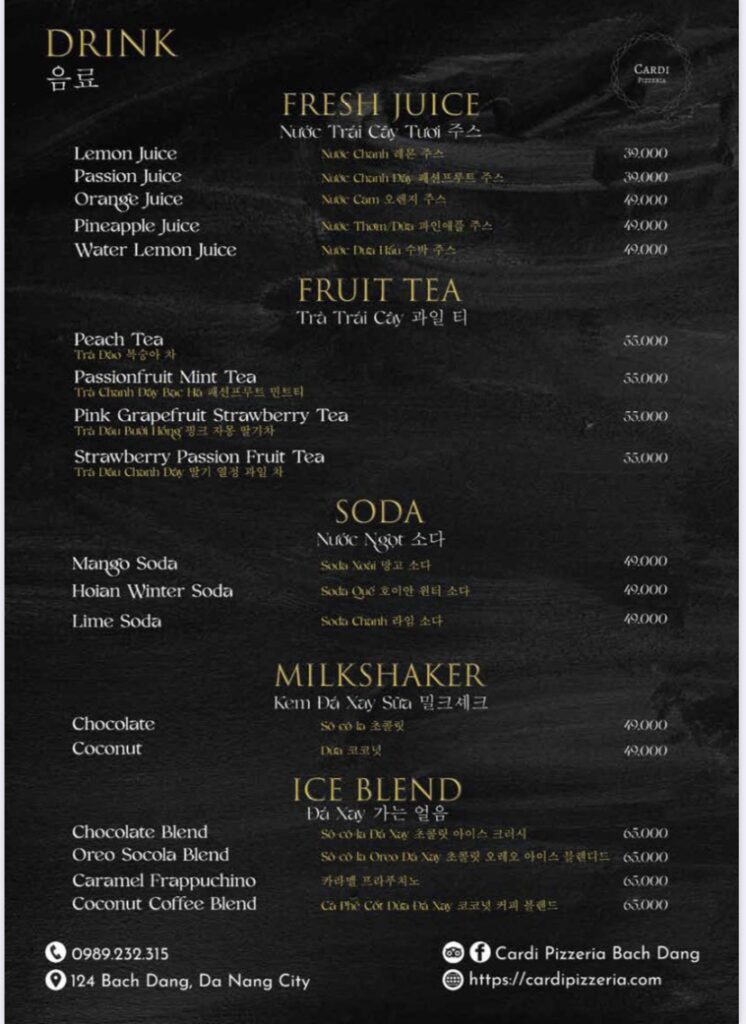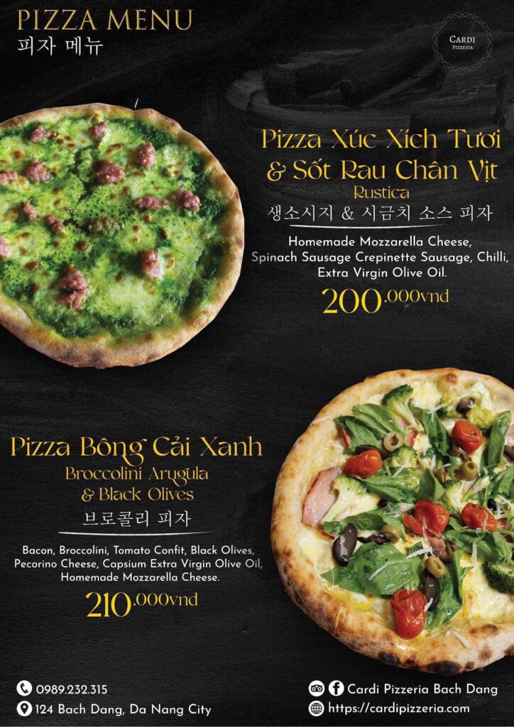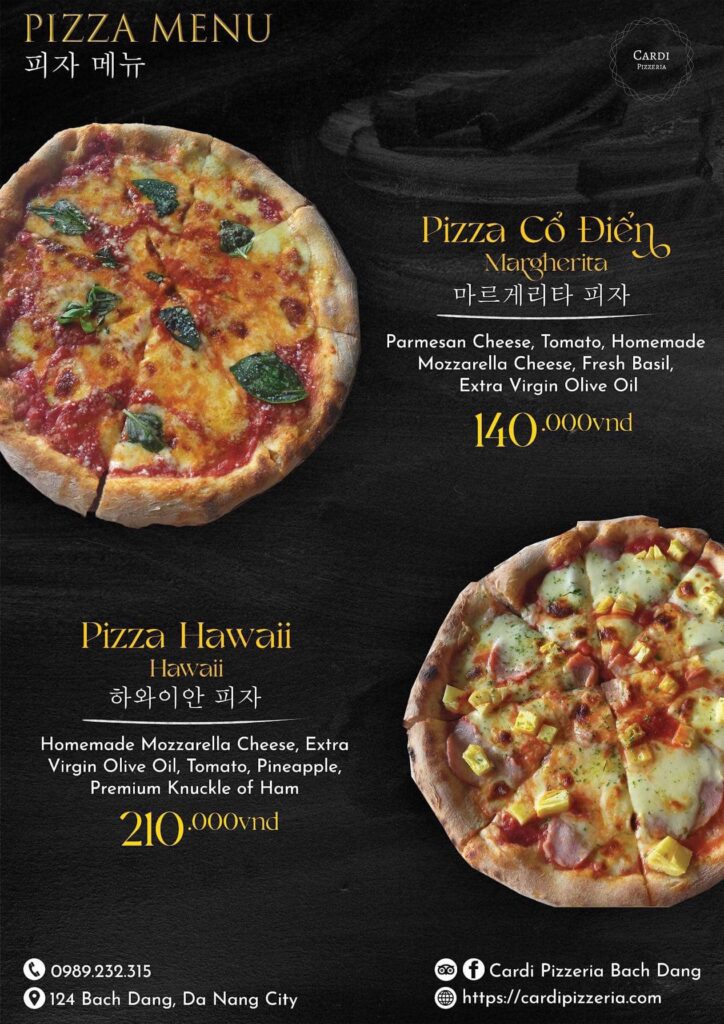Cardi Pizzeria là chuỗi nhà hàng pizza thủ công số 1 tại miền trung. Tại đây cam kết "Pizza tươi, Chuẩn Ý 100%, Nướng bằng lò củi và Bò bít tết thượng hạn